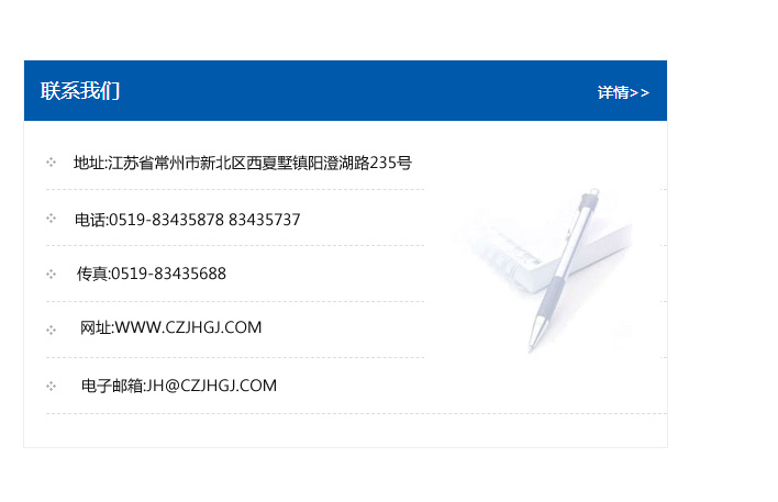 傳真:0519-83435688    郵編:213135    網址:WWW.czjhgj_com.cqyunzhishang.com    電子郵箱:JH@czjhgj_com.cqyunzhishang.com
